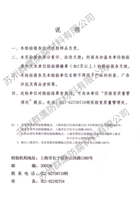 蘇州群鷹防腐材料有限公司 電 話 :0512-65831299 67776979 傳 真 :0512-80853736 手 機(jī) :13912611076 E-mail:bunny@qunytl.com(銷售) sales@qunytl.com(技術(shù)支持) 地 址 :江蘇省蘇州市姑蘇區(qū)宋仙洲巷17號(hào)西-11號(hào)