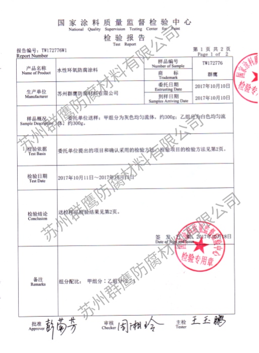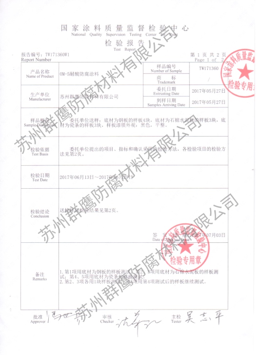 蘇州群鷹防腐材料有限公司是一家專業(yè)耐酸防腐漆,耐酸堿氟橡膠涂料,耐高溫防腐蝕/om/酸堿鹽/耐臭氧/抗臭氧耐紫外線/無溶劑重防腐涂料等耐酸防腐涂料生產(chǎn)廠家供應(yīng)商,擁有從煙筒煙氣脫硫防腐到脫銷脫汞、煙囪新建工程和鋼結(jié)構(gòu)維護項目、火力電廠市場方面的成功案例,可為您的項目提供全面耐酸防腐油漆解決方案支持涂料價格合理;好品質(zhì)源自好原料,進口氟橡膠重防腐涂料,采用進口原料,專利技術(shù)防腐性能更優(yōu)異,熱線河南、廣東、廣西、佛山市、北京、揭陽市、海南、梅州市、重慶、湛江市、江西、沈陽、蘭州、云南、天津、滄州、成都、銅陵、濟南 版權(quán)所有 ? 蘇州群鷹防腐材料有限公司 Copyright m.scjp-tree.com All rights reserved. 蘇ICP備11003704號 地址:江蘇省蘇州市姑蘇區(qū)宋仙洲巷17號西-11號 電 話:0512-65831299 67776979 傳 真:0512-80853736 溫馨提示:單位和個人購買相關(guān)危險化學(xué)品應(yīng)當具備相應(yīng)資質(zhì)和資格!